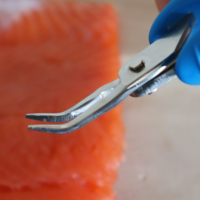 The specially shaped tip lets you firmly grip bones and easily remove them.